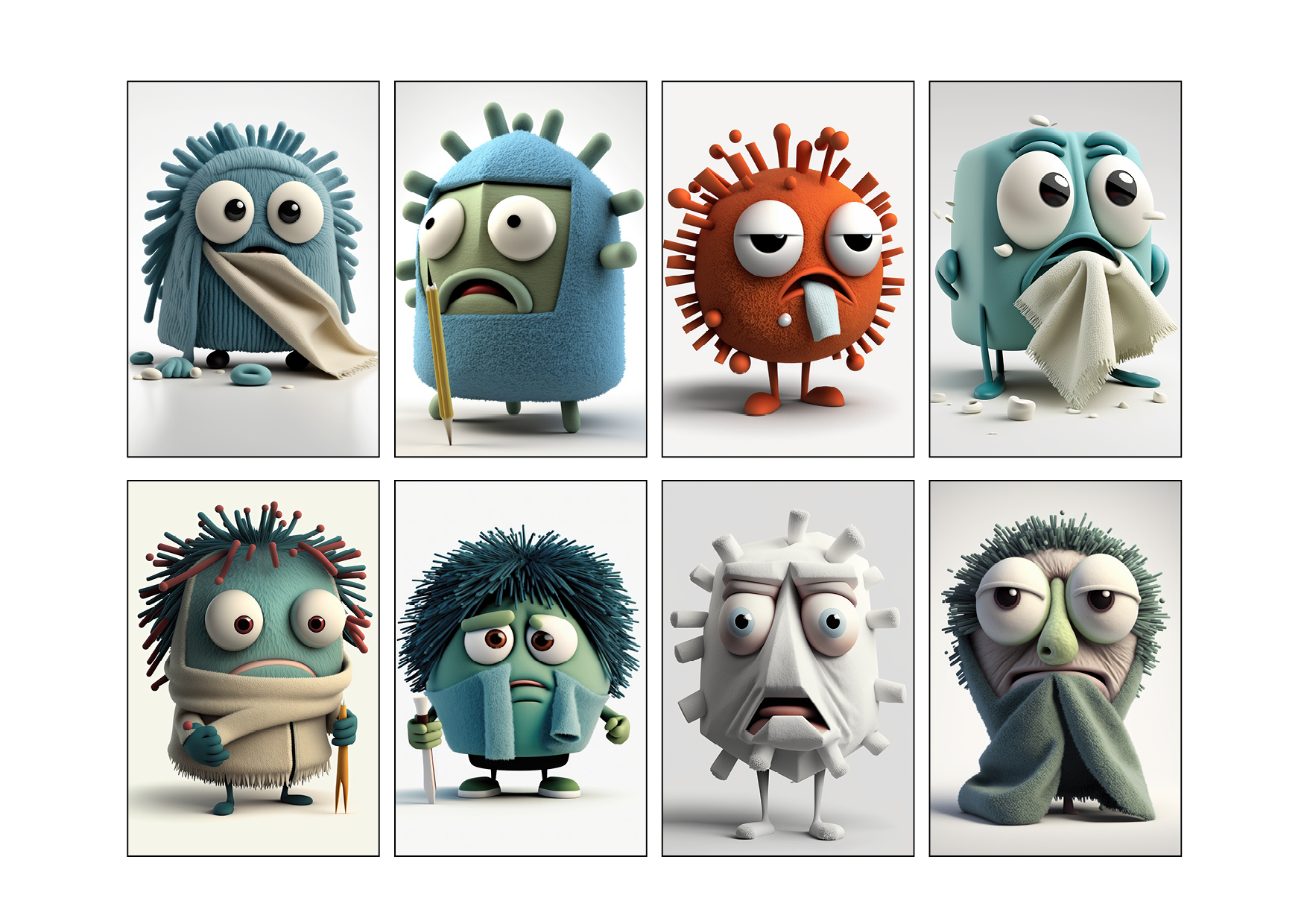 Das Ergebnis: eine große Auswahl „fieser Schnupfenmonster“ zum Thema Erkältung – plakativ, unique und unverbraucht.